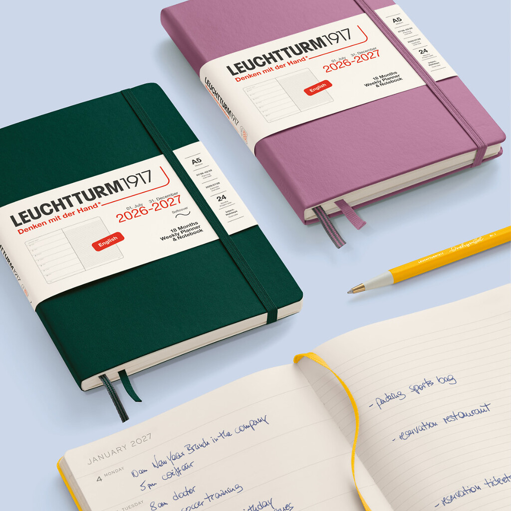 • Cada doble página incluye una página con la semana de la agenda y una página rayada en una libreta